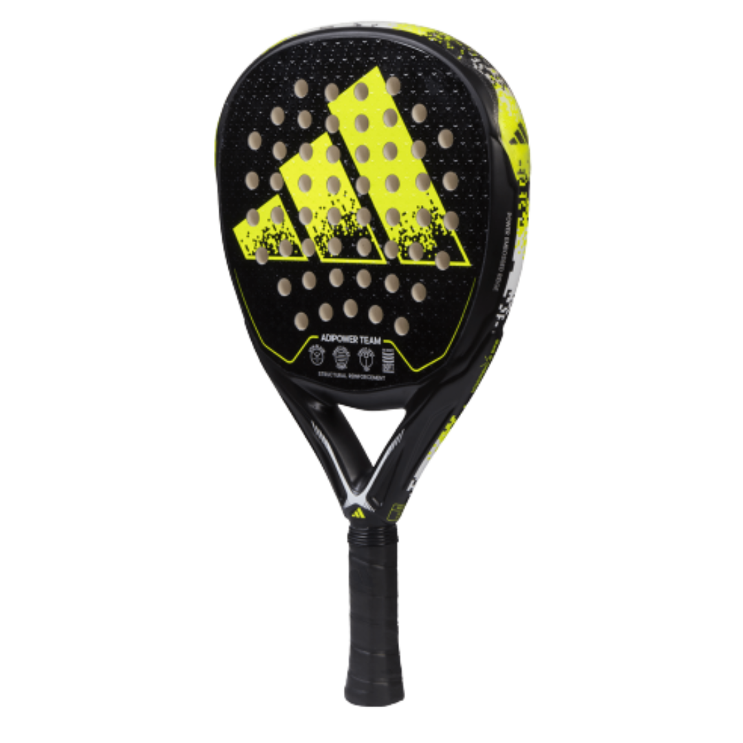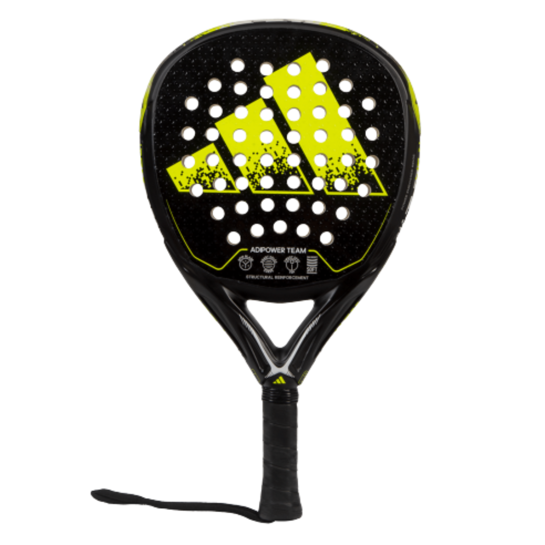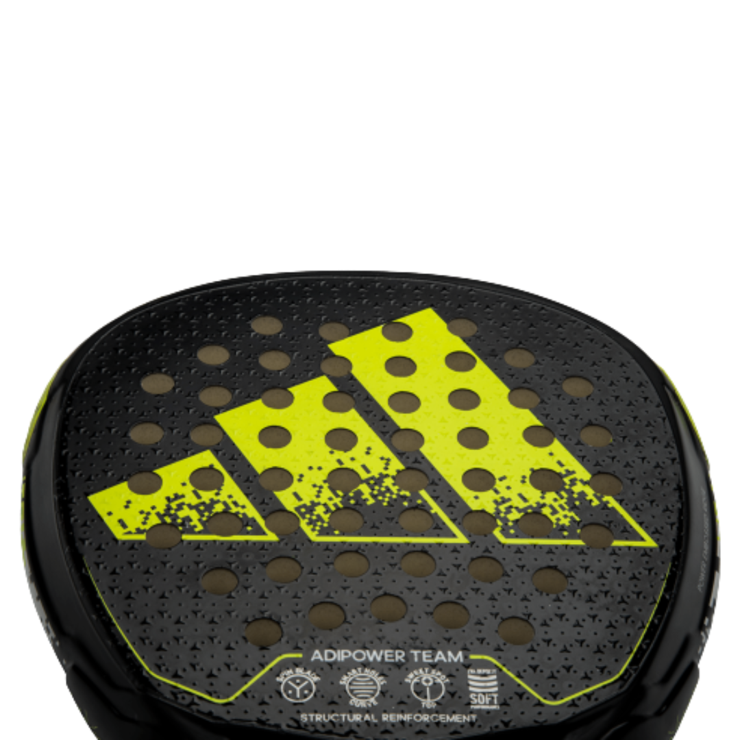 La ADIPOWER TEAM complementa todas sus prestaciones para un resultado todoterreno. La combinación de goma EVA SOFT PERFORMANCE y la fibra de vidrio FIBER GLASS es una apuesta por el mejor control, comodidad y salida de bola. En esta dirección, la tecnología SPIN BLADE va un paso más allá al garantizar también una gran facilidad para los efectos. La otra gran tecnología con la que cuenta esta pala es el STRUCTURAL REINFORCEMENT, un refuerzo de todo el marco de la pala, que mejora su durabilidad y le aporta rigidez. La forma de diamante completa el paquete de especificaciones para lograr una chispa de potencia cuando se necesita.