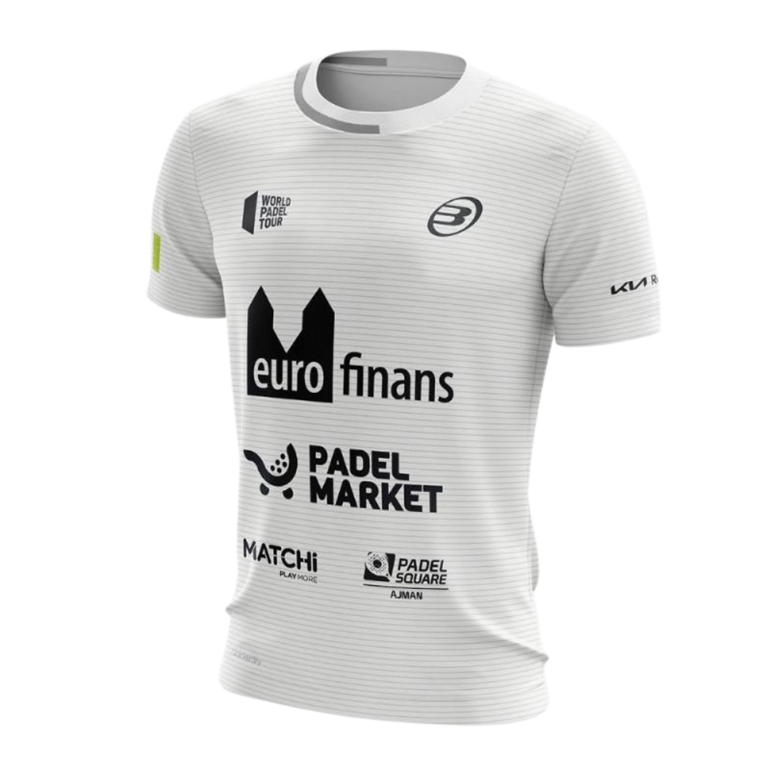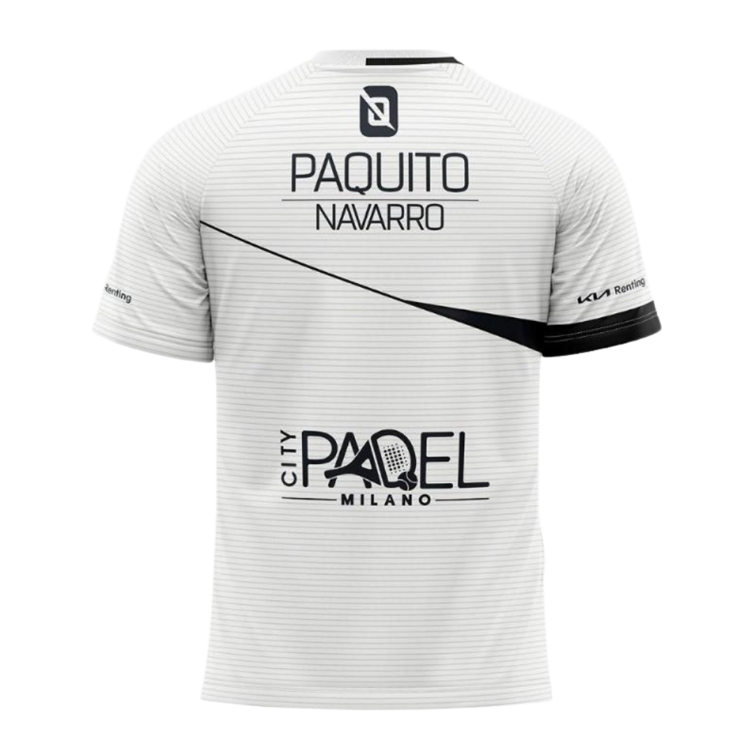 Playera de pádel oficial del jugador Paquito Navarro. El modelo Bullpadel Octavio es una prensa avanzada fabricada en tejido single jersey con elastán muy cómodo y de secado rápido. Incluye los logos de sus patrocinadores.